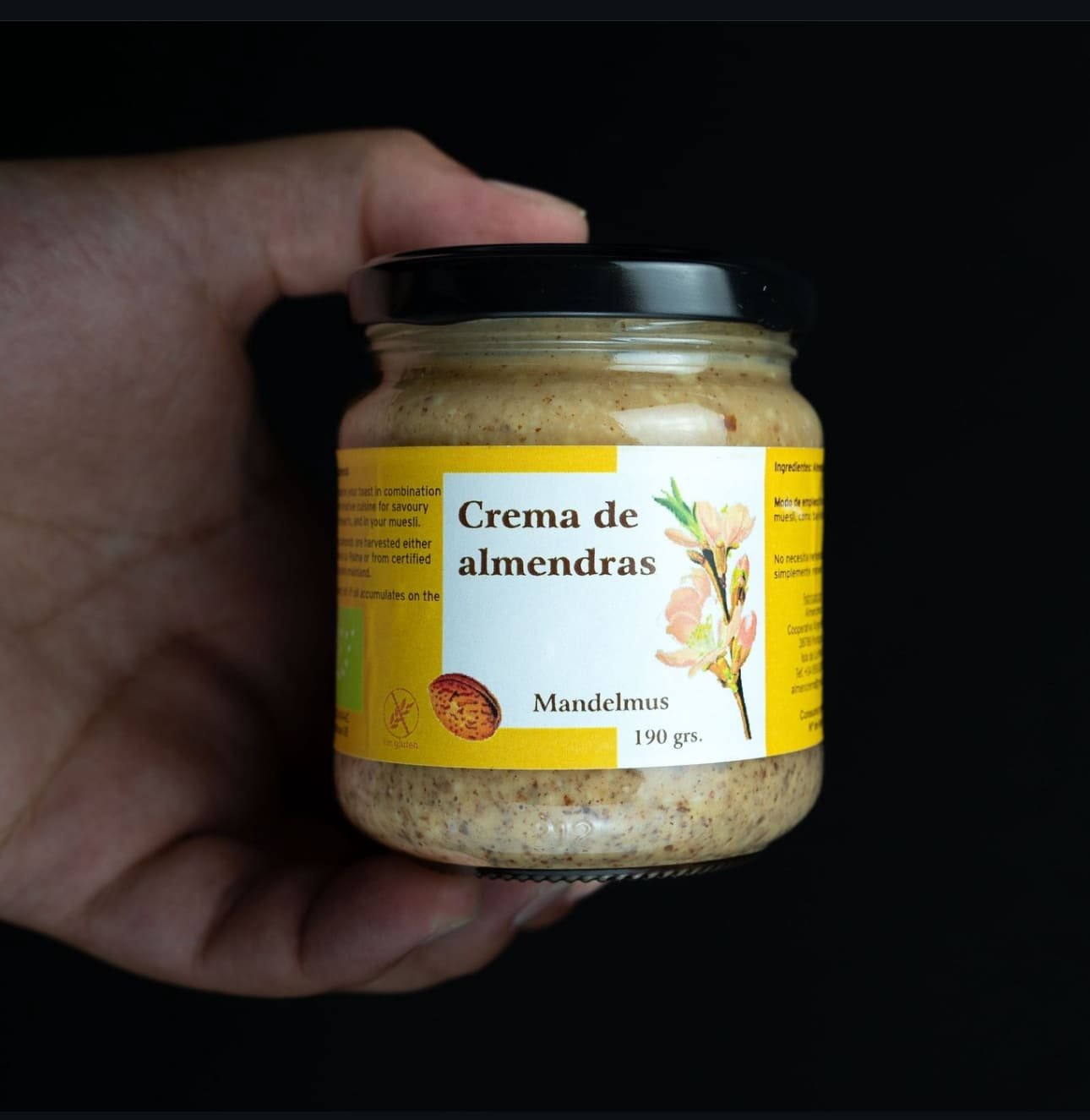 Crema de Almendras sib azúcar, ni grasas ni emulgentes añadidos.