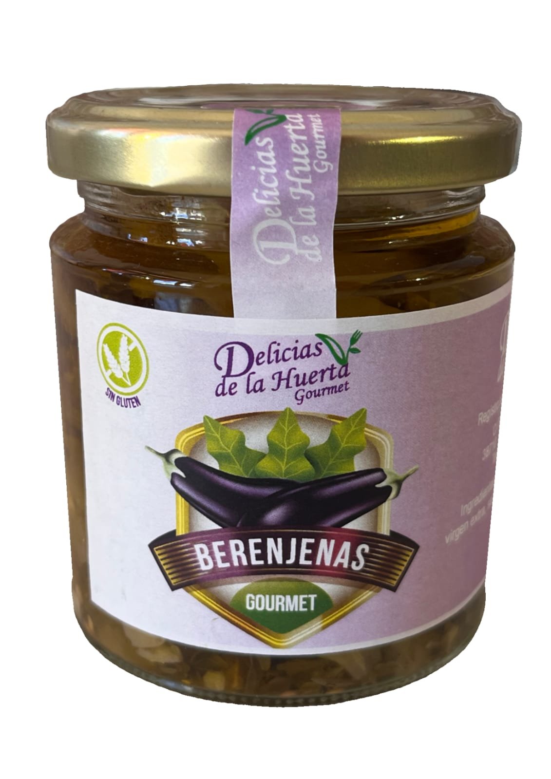 Tarro de berenjenas en aceite de oliva virgen extra con notas frescas procedentes del vinagre de vino.