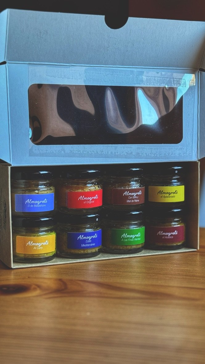 8 Sabores encontrarás no sólo los auténticos sabores canarios como el Almogrote El Original, con Gofio y Miel de Palma, el de Matalahúva y el Aplatanado, sino también nuestros sabores más internacionales y atrevidos como el Almogrote de Curry, el Estilo Mediterráneo, El Arábico o a las Finas Hierbas.
