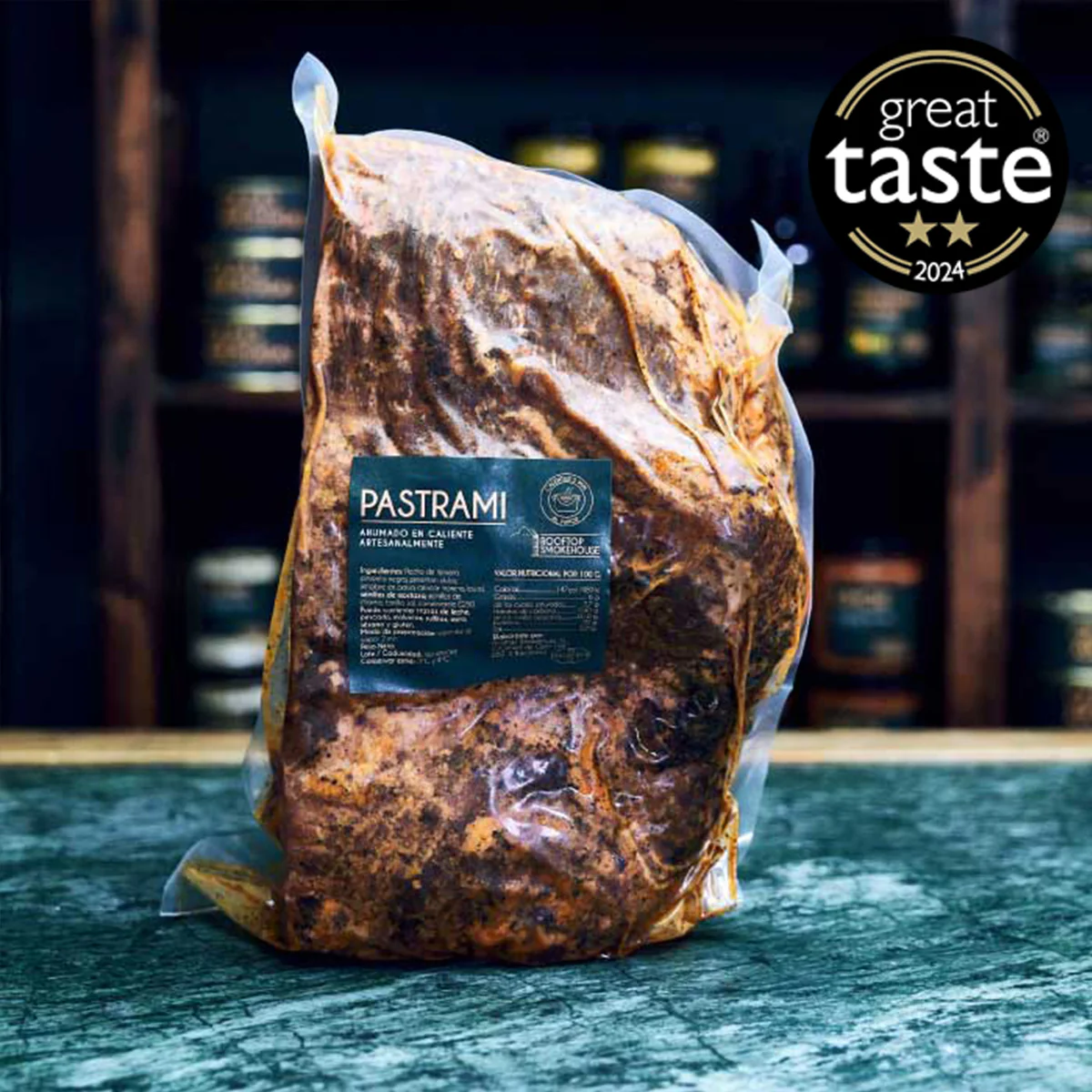 Nuestro pastrami está elaborado de manera artesanal y tradicional. Recomendamos sacar el pastrami entero de la bolsa y pasar toda la pieza por vapor durante unos minutos (colador encima de olla con agua hirviendo).
